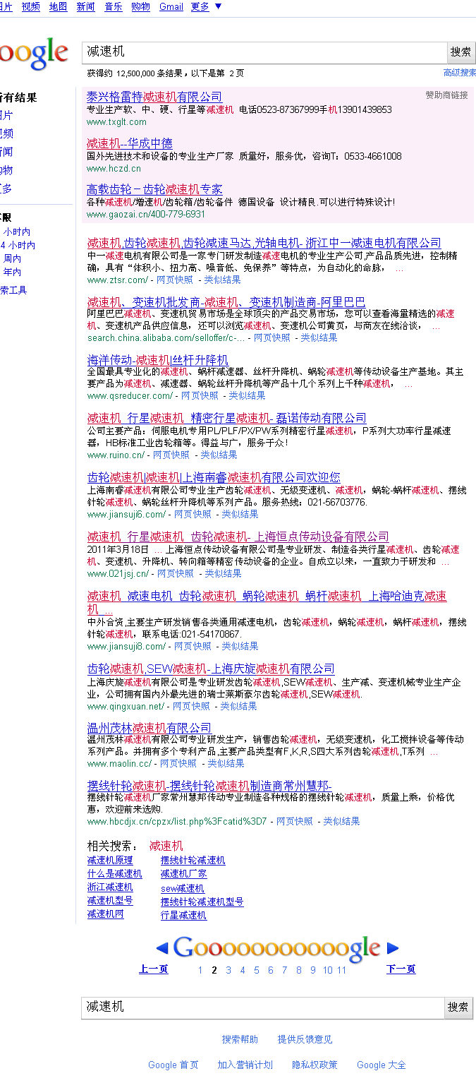 最近,公司網站排名上升瞭一些。輸入關鍵詞“減速機”,本公司網站在谷歌的結合排名在第16位,目前位於搜索結果的第二頁中間。随著公司業務的提升,網站會有更好的排名。也謝謝各位朋友對本公司支持與幫助,謝謝。