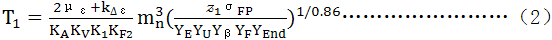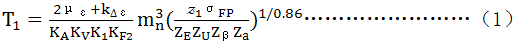 式(B2)與正文的公式(8)等效,其符号意義及取值同公式(8)。σHP及YF分别按大、小齒輪確定,σHP1/YF1和σHP2/YF2值 ,取其中的小值代入式(B2)。對於人字齒輪,(2με+k△ε)按單側齒寬計,算得的T1值爲單側齒寬的名義轉矩。