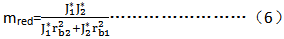 式中:mred——齒輪副的誘導質量 ,即每個齒傳輸線單位齒寬質量的誘導質量 ,與其基圓半徑或齧合線有關;