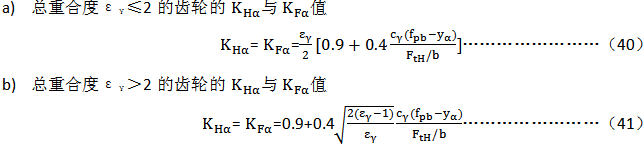 齒間載荷分配系數是考慮幾對同時齧合的輪齒之間的載荷分配不均勻的影響。其值按下述方法確定7):(7)式(40和式(41)基於這樣假定,即符合規定的齒輪精度的基節偏差,且是沿小輪和大輪的圓周正常分布。當輪齒具有某種故意的偏差時,它們是不适用於的 。)