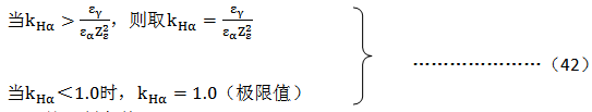 根據式(42)和式(43)的限制值,假定載荷最不利的分布爲整個切向載荷僅用一對齧合輪齒(chǐ)傳(chuán)遞。