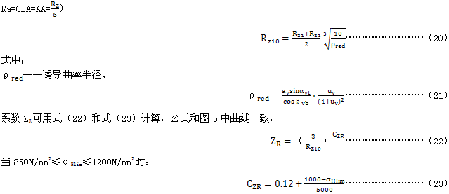 根據14.2的規定,粗糙度系數ZR是考慮齒面狀況對接觸疲勞(點蝕)強度的影響。圖5中的粗糙度系數曲線是Rz10和配對齒輪中較軟齒輪材料σHlim的函數。該圖對節點處誘導曲率半徑 的齒輪副是有效的 。