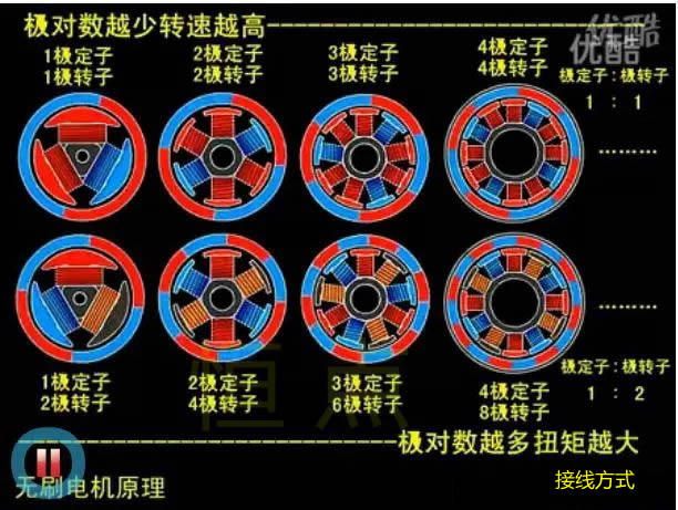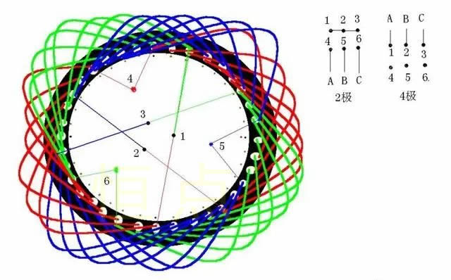 三相交流電機每組線圈都會産(chǎn)生N、S磁極,每個電機每相含有的磁極個數就是極數。由於(yú)磁極是成對出現的,所以電機有2、4、6、8……極之分。