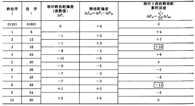 表3跨齒(chǐ)齒(chǐ)距累積誤差的數據處(chù)理