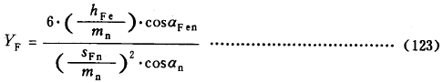 hFe——彎曲力臂。外齒輪由式(137)計算,内齒輪由式(142)計算。