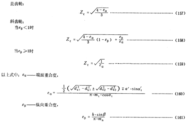 彈性系數ZE是用以考慮材料彈性模量E泊桑比v對赫茲應力的影響。其數值可按實際的材料彈性模量E和泊桑比v由式(120)計算得出。對於某些常用材料組合的ZE可參考表14查取 。