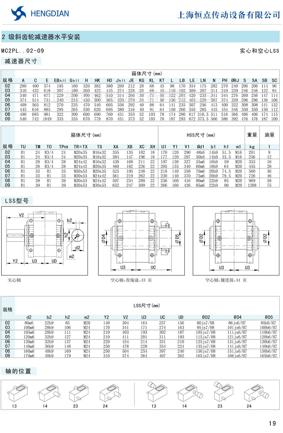 傳動能力和外型安裝尺寸/斜齒水平安裝 - MC硬齒面減速器