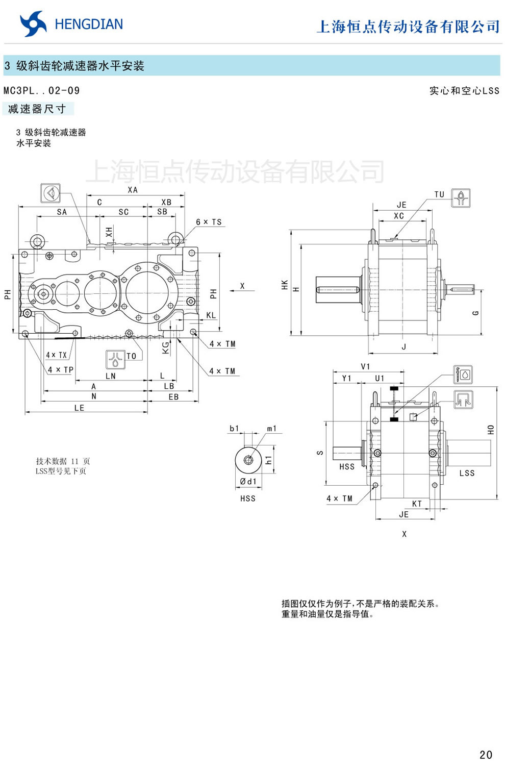 7 - 傳(chuán)動能力和外型安裝尺寸/斜齒(chǐ)水平安裝 8 - 傳動能力和外型安裝尺寸/斜齒垂直安裝