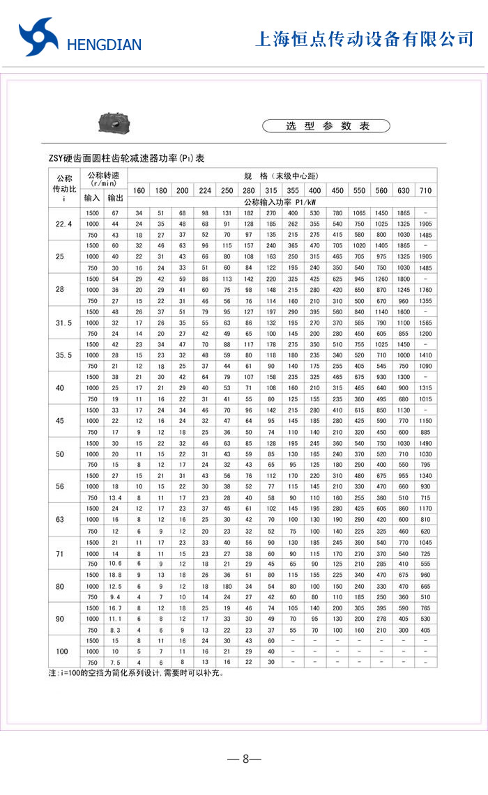ZSY選型表 - Z系列硬齒面圓柱齒輪減速機